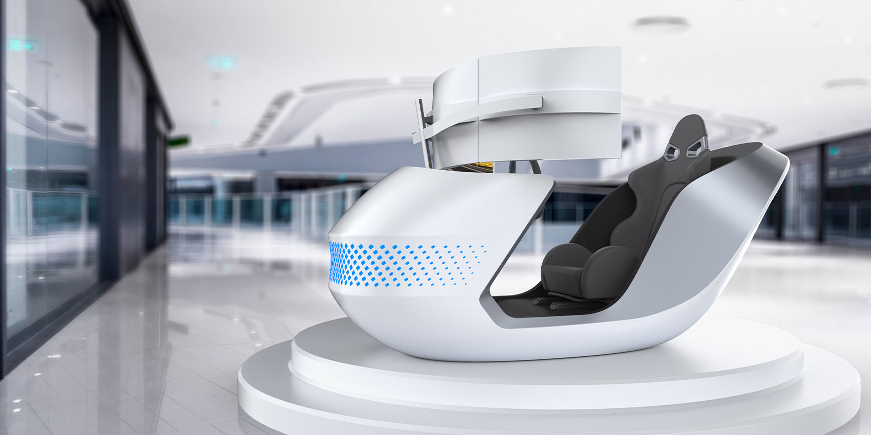 這款模擬駕駛艙造型靈感來自于天鵝,流線型設計賦予其優(yōu)雅的外觀,同時也象征著駕駛的速度感與未來感,富有生命力。采用藍色點狀燈作為艙頭的裝飾燈,提升了設備整體的氛圍感。三屏液晶顯示器高度模擬賽車的真實環(huán)境,座椅能夠自動調整角度和支撐力度,給駕駛員帶來更逼真的駕駛體驗。