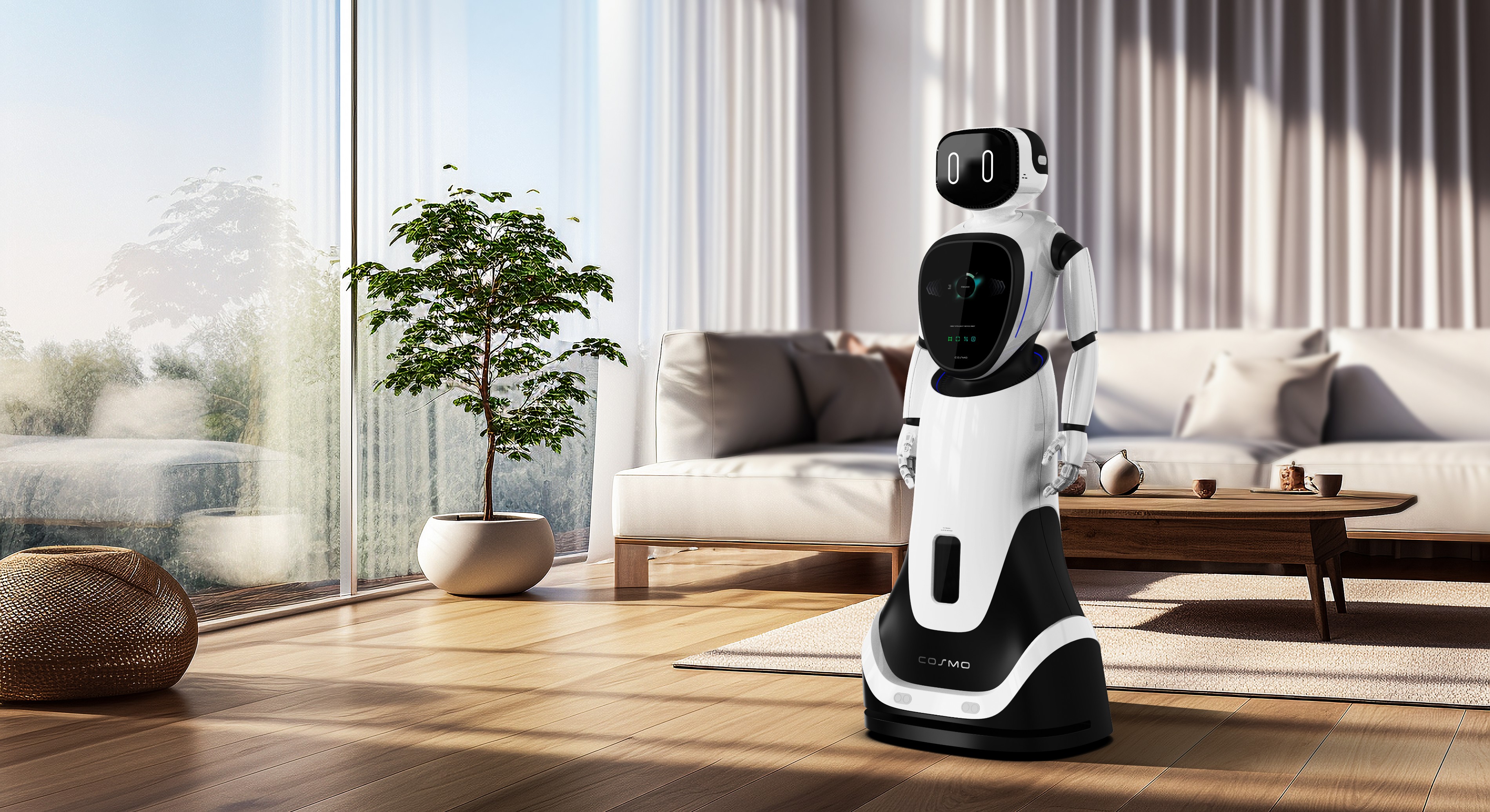 圖中的人形機(jī)器人,它的外觀設(shè)計(jì)極具未來感與科技感。整體以白黑為主色調(diào),搭配流暢線條,營造出簡潔大氣的視覺效果。頭部造型獨(dú)特,帶有類似“眼睛”的顯示區(qū)域,增添了靈動(dòng)性。身體部分有顯示屏,可展示相關(guān)信息,手臂等關(guān)節(jié)設(shè)計(jì)精巧,既保證了機(jī)械結(jié)構(gòu)的實(shí)用性,又讓整體外觀更具協(xié)調(diào)性,仿佛是從科幻世界走來的智能伙伴,能很好地契合各類科技場景的應(yīng)用需求。